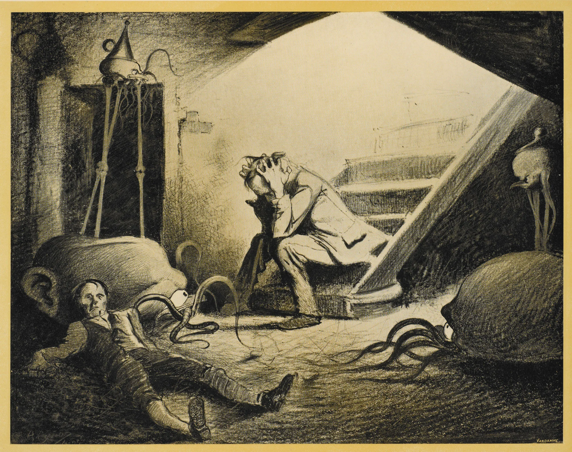 The 1898 novel also startled its first readers with its verisimilitude, playing on a late Victorian sense of apocalyptic doom as the turn-of-the century approached. But what contemporary circumstances eight years later, we might wonder, fueled the imagination of Henrique Alvim Corrêa, whose 1906 illustrations of the novel you can see here? Wells himself approved of these incredible drawings, praising them before their publication and saying, “Alvim Corrêa did more for my work with his brush than I with my pen.”