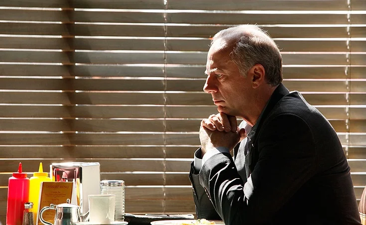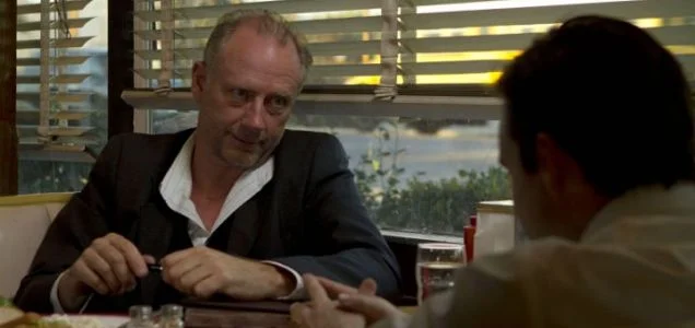 Berkley, an under-appreciated veteran of the stage and screen is mesmerizing as the eerily anonymous Man whose bargaining powers drive the story forward. As The Booth begins, the Man clearly resembles a modern-day Mephistopheles, smiling silkily while turning his clients' greatest weaknesses against them, fomenting sinfulness and suffering at every turn. When Mrs. Tyler asks "Do you make everyone who comes to you hurt someone?" the Man responds "Only some," with a dismissive, half-disappointed shrug more threatening than the words themselves.